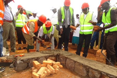 Pose de la 1ère pierre par le Ministre des Transports, des Travaux Publics et de L'Equipement.