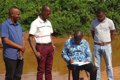 Le Ministre des Infrastructures de l'Equipement et des Logements Sociaux en compagnie du Directeur Général de l'Agence Routière du Burundi et de l'administration locale s'est rendu sur la RC:Matana-Songa-Ndago-Bururi sur la rivière Kibarazi I.