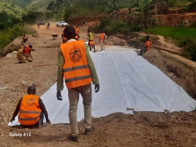 La reconstitution de la couche de base est en cours et sera suivie par la réhabilitation d'un fossé maçonné.