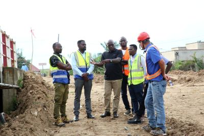 Visite du Directeur Général, des directeurs et de certains cadres de l’Agence Routière du Burundi sur la RN4 :Chanic-Gatumba, précisement au PK 11+500, pour constater l’état d’avancement physique des travaux d'urgence de dragage du pont de la Concorde sur la rivière Rusizi.