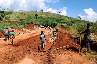 La fouille et la construction des caniveaux sont en cours pour les travaux de réhabilitation de la RP118:Tronçon Kinama-Mubimbi-Matyazo-Muzinda de 26Km.Le taux d'avancement est de 75%