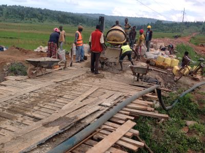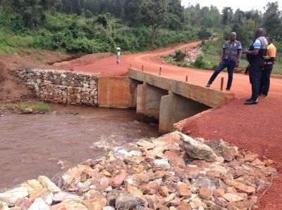 -le pont Gashanga(dalot triple) a été visité, situé sur la RP205: Buhiga-Bugenyuzi-Tangara. La construction de caniveaux est en cours. Bien que les travaux de ce pont touchent bientôt à leur fin, quelques recommandations avaient émises dont: mettre des gabillons sur les bordures du pont pour sa protection et d'accélérer ces travaux de finissage.