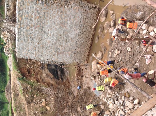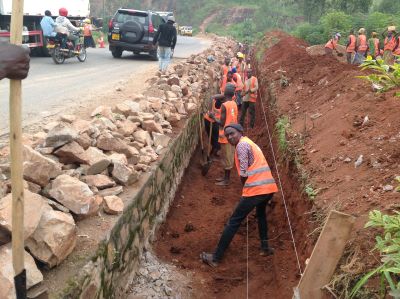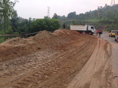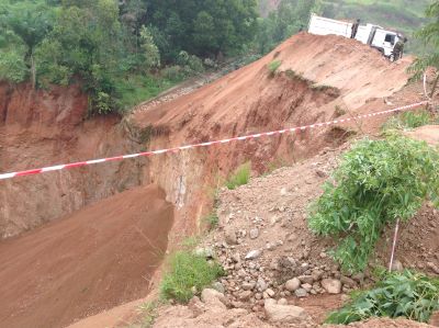 est de constater l'état des glissements de terrain le long de ce tronçon. Les travaux d'urgence consisteront à faire la collecte des eaux de ruissellement par des fossés maçonnés longeant le tronçon de ladite route et la protection des zones effondrées par la plantation des espèces fixatrices du sol et le respect des mesures environnementales en collaboration avec l'administration locale.