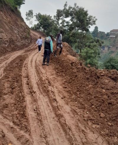les travaux de réhabilitation de cette piste en compagnie du responsable des travaux. Piste de 4Km de linéaire, les travaux en cours sont la fouille des caniveaux et traçage d'une piste d'accès vers le site latéritique. Cette piste relie la Province de Bujumbura et le chef lieu de la commune Isale.