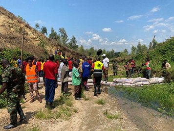 RN5: Bujumbura - Cibitoke, au PK33, en amont de la rivière Murotso, en Commune Buganda ,Province Cibitoke ont été effectués, en ce samedi 28/10/2023, des travaux communautaires consacrés à la protection de la route par la construction des barrages qui vont servir de casse -vitesse de l’eau et éviteront les alluvions qu’emportent la rivière pendant la saison des pluies et les déposent dans la route, paralysant ainsi la circulation.