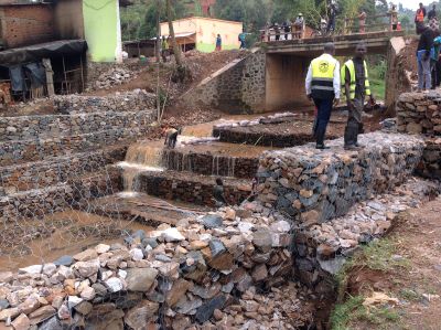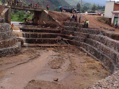 2. Travaux de stabilisation par gabionnage du Pont Kigezi sur la RN7 au PK20 de la commune Nyabiraba de la Province Bujumbura, ces travaux sont à 95%, seuls restent les travaux de construction du caniveau maçonné et les remblais derrière les gabions.