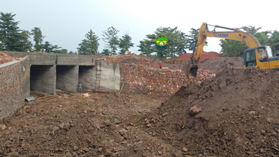 Les travaux de construction d'un ouvrage hydraulique sur le pont Murago de la RN9