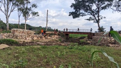 Travaux de stabilisation par gabionnage du Pont Kinyankuru1 de la RP305 reliant les communes Ruhororo et Tangara avec un taux d'avancement de 20%.