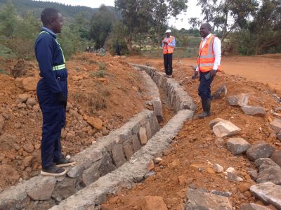 Sur la RN1: Bujumbura -Bugarama , les travaux d'assainissement et de stabilisation de la route par gabionnage vont bon train;